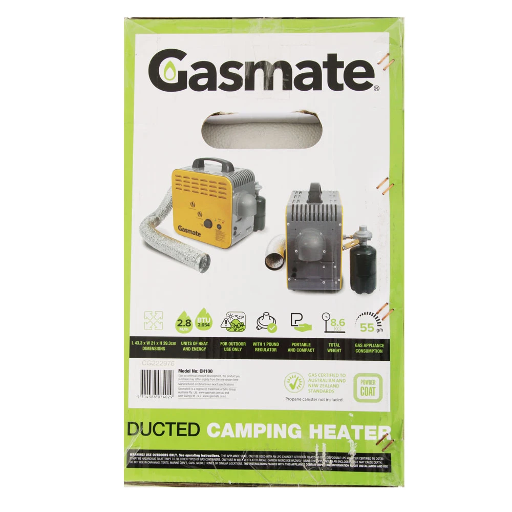 Gasmate Ducted Camping Heater Specifications: