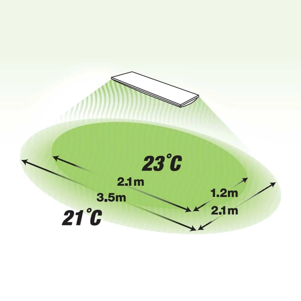 - Warms an area of approximately 4 meters squared when mounted at a height of 2.3m in a sheltered outdoor space