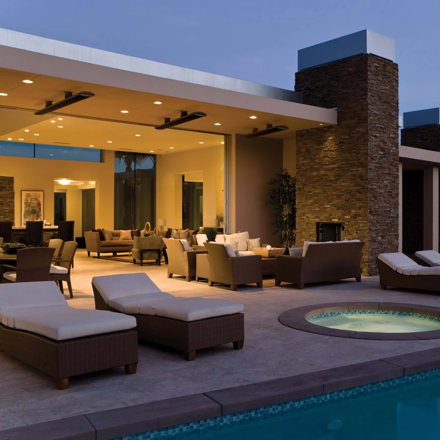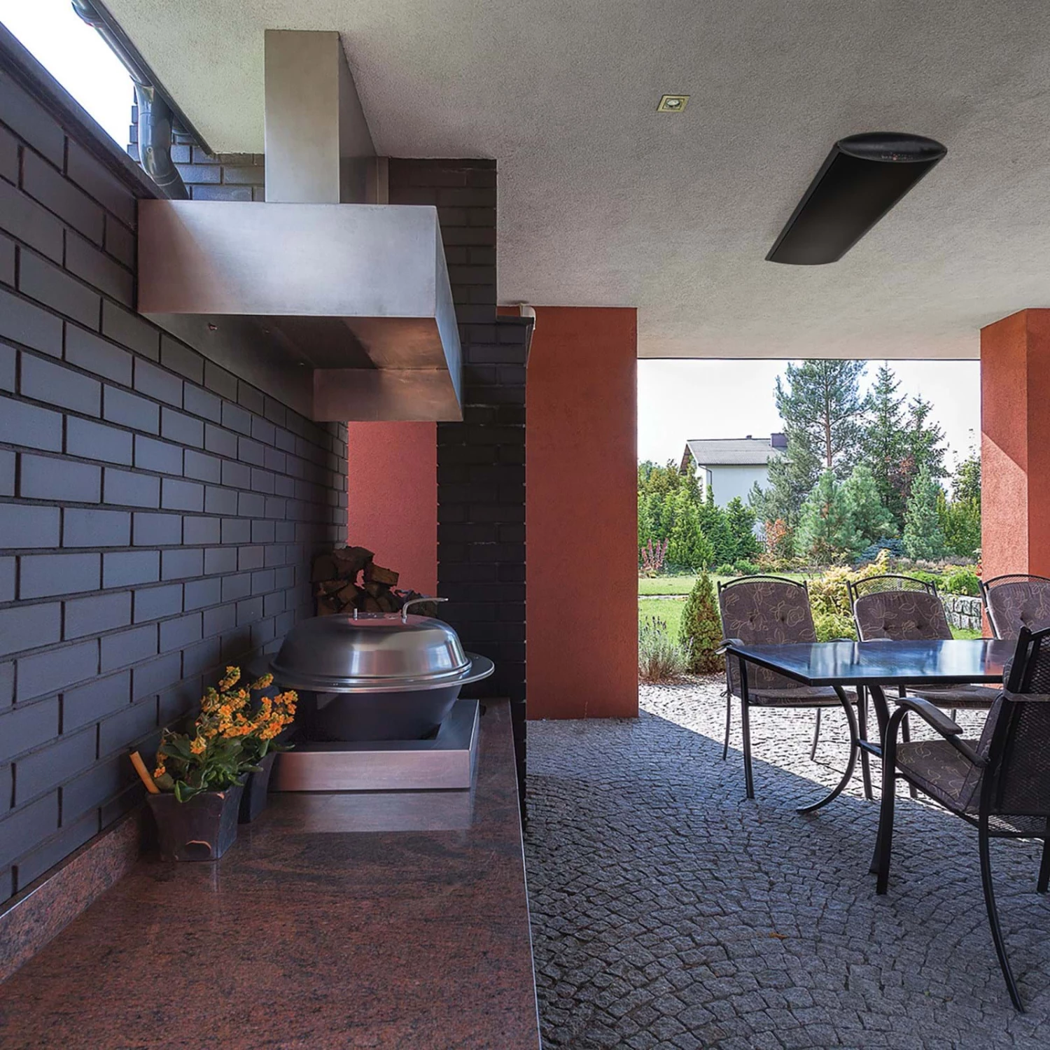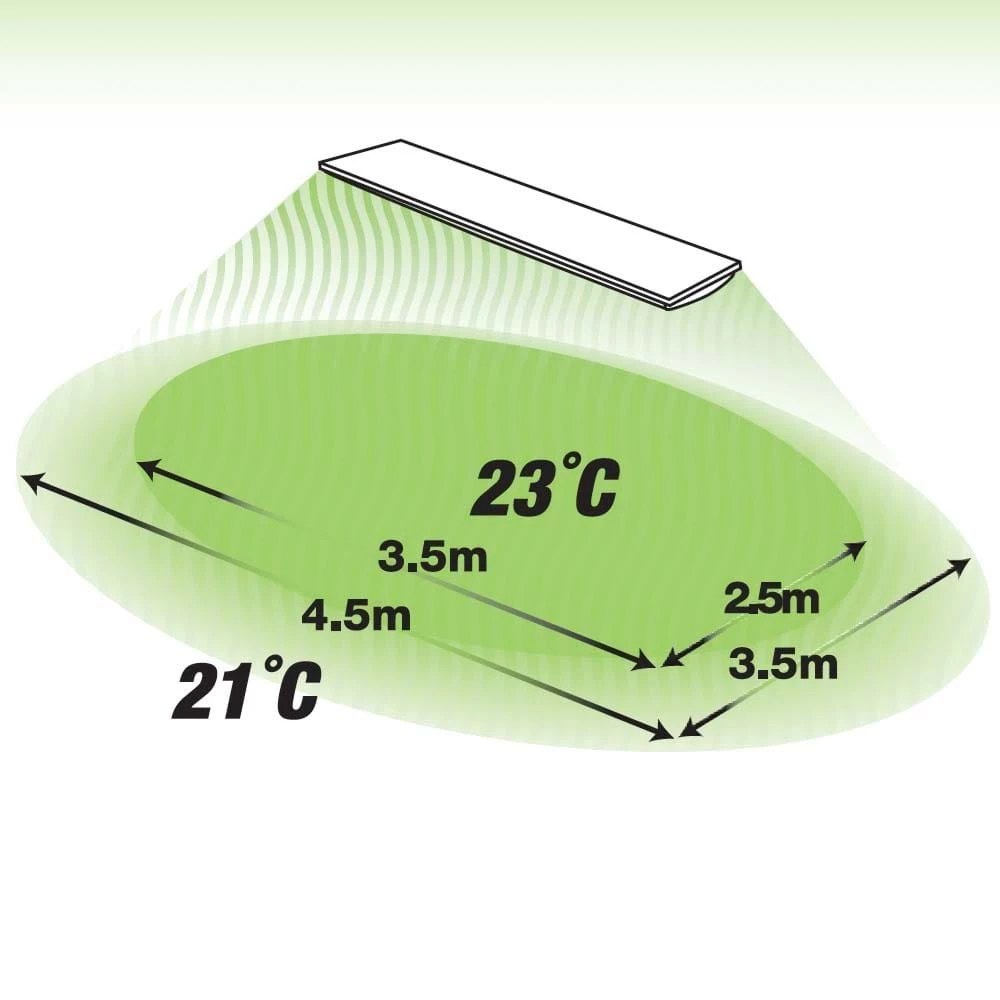 - Warms an area of approximately 6 meters squared when mounted at a height of 2.3m in a sheltered outdoor space