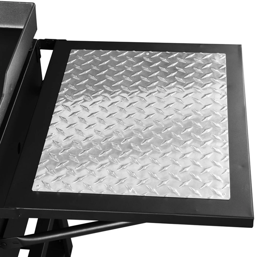 - Heavy-duty drop-down side shelves with distinctive diamond textured finish