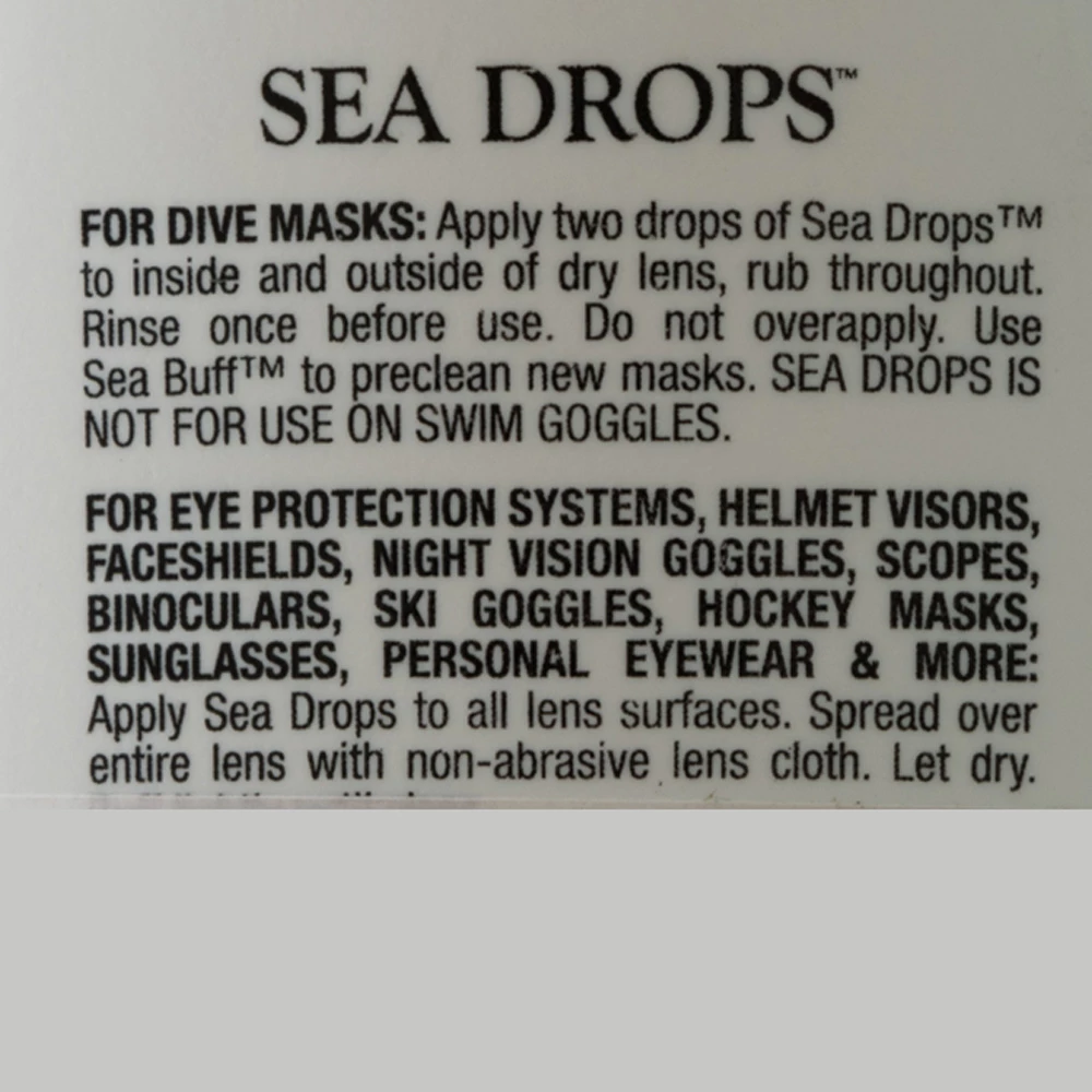 The Gear Aid Sea Drops Anti-Fog and Lens Cleaner cleans the lenses of your snorkeling and diving masks for crystal-clear views of the ocean. A quick application removes grime from lenses and prevents them from fogging up. The alcohol-free formula works in warm or cold waters and will not damage silicone or rubber support frames. Itβs concentrated, a single 1.25 fl oz bottle can clean and treat multiple lenses. This anti-fog / cleaner is also easy to use. Just squeeze, rub, rinse and wear. The Gear Aid Sea Drops Anti-Fog and Lens Cleaner will have you enjoying each and every dive.