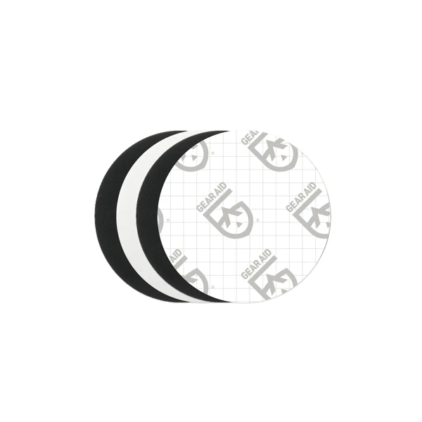 Toss Gear Aid Tenacious Tape Circular Repair Patches in your outdoor gear kit for a little extra peace of mind. Each pack contains 2 black nylon round repair patches and 2 clear round repair patches for a total of 4. Repairs tents, camping gear, sleeping bags and pads, vinyl rafts —whatever needs a quick patch, so you can stay outside.